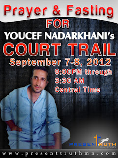 Този е денят, в който можем да се присъединим към нашите братя и сестри по света в пост и молитва за Юсуф Надархани, чието съдебно дело ще започне от 23:30 часа централно европейско време на 7 септември или 01:30 часа българско време на 8 септември. Ако се чувствате водени от Бога можете да се молите и постите за това дело от 21:00 до 03:30 централно европейско време или от 23:00 до 05:30 часа сутринта българско време.